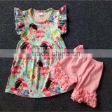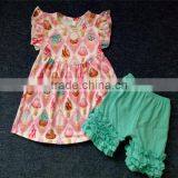 2017 Wholesale Children Boutique Clothing Ruffle Outfit for Kids Cupcake Top and Ruffle Shorts Outfit