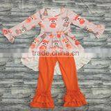 Fall Boutique Remakes Girls Clothing 2017 Trendy Kids Halloween Orange Ruffled Pants Outfits Sets