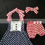 New 4th of july black red slip dress boutique chicldren's girl patriotic fashion dress baby girls dress with lovely pocket