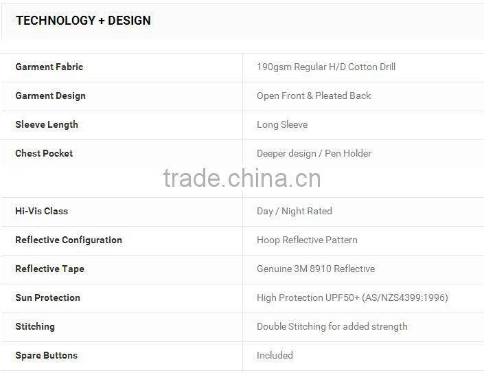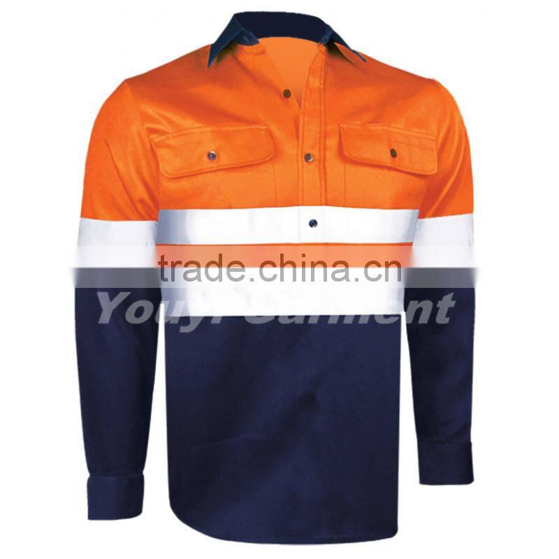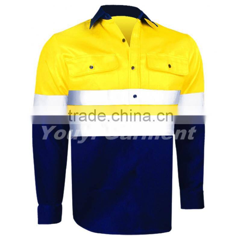 hi-vis lightweight long sleeve closed front two tone cotton work shirts