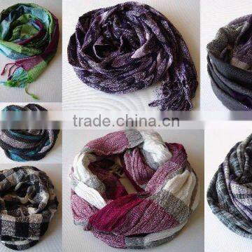 Collection of fashion scarves made of viscose yarn. Many patterns and designs available, plain and yarn dyed. Different finishings possible