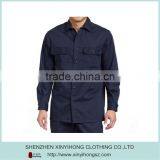Dark Blue Color 100% Cotton Twill Fabric Men's Work Shirt With Customized Logo
