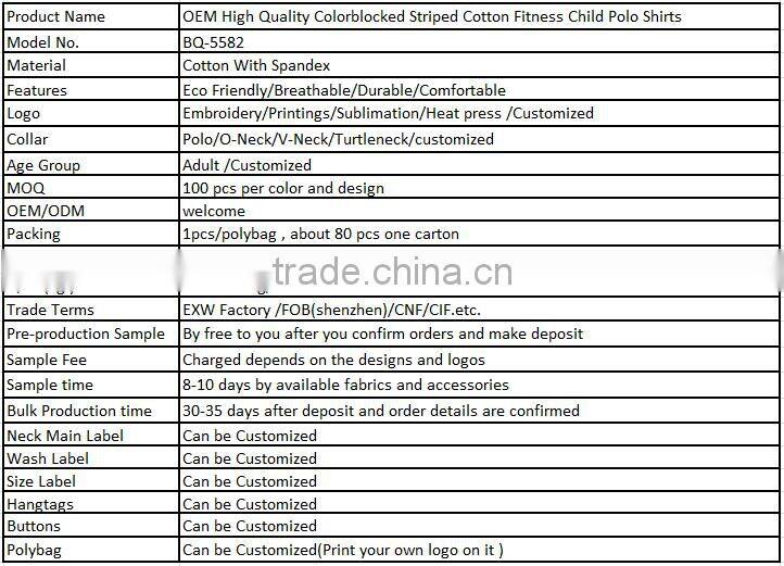 OEM High Quality Colorblocked Striped Cotton Fitness Child Polo Shirts