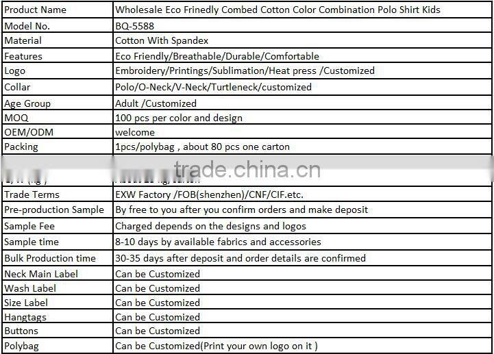 Wholesale Eco Frinedly Combed Cotton Color Combination Polo Shirt Kids