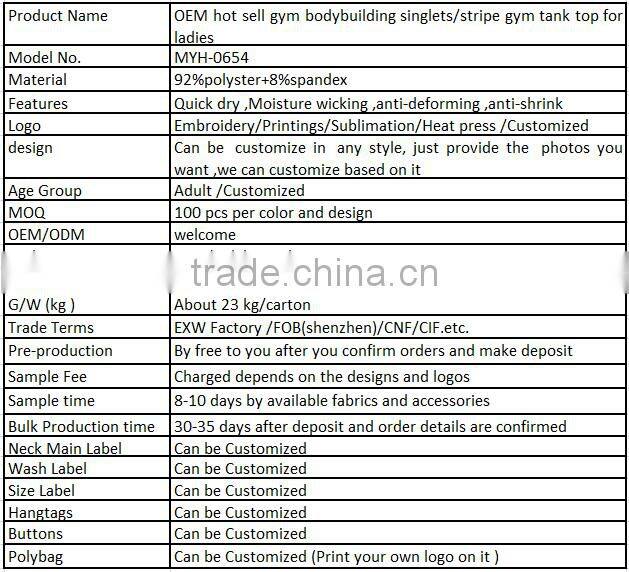 OEM hot sell gym bodybuilding singlets/stripe gym tank top for ladies