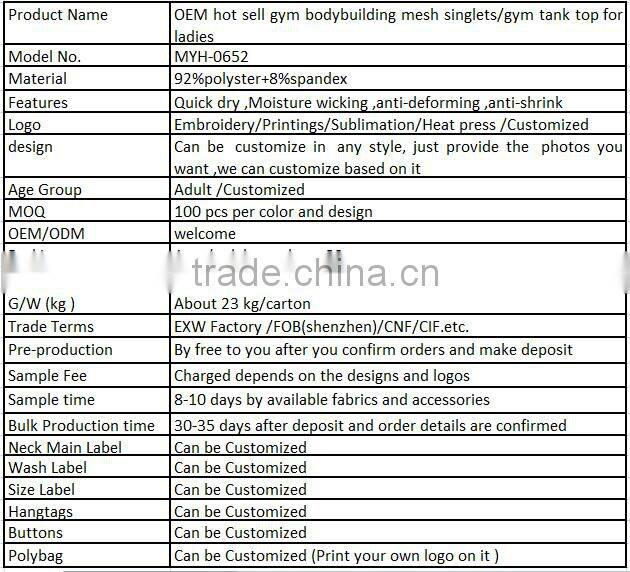 OEM hot sell gym bodybuilding mesh singlets/gym tank top for ladies