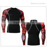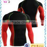 Mens Skin Tight Base Layer Spandex Long Sleeve Black-red T-shirt