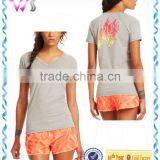 Ladies Back Doulble Color Print T-shirt 65% Cotton 35% Polyester Authentic V-neck Sports Jerseys Patterns