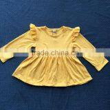 LY-090 Soild Yellow Baby Clothing Puff Sleeve Soft Casual Girl Cotton Dress Party Dress Todddler Princess