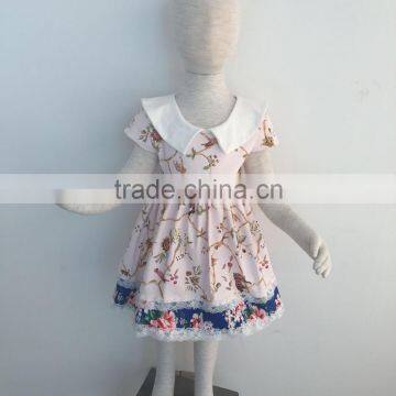 QL-366 shorts sleeve bird and tiger pattem design dresses baby clothes 2016