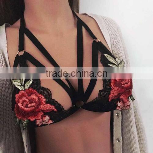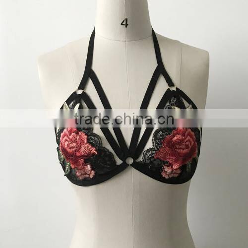 2017Wholesale Price Women Halter Hollow Floral sexy Bra
