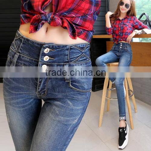 Cotton High Waist Women Pencil Pants printed letter blue new model jeans pants