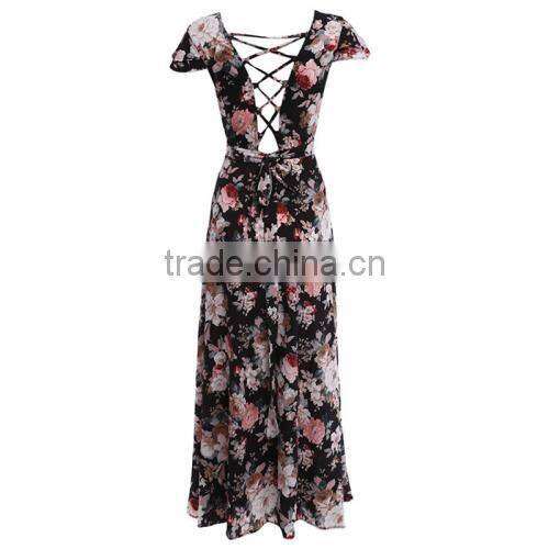 2017Guangzhou Wholesale Summer One-piece Dress Deep V Sexy Dress