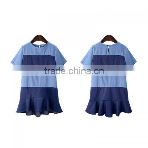 Cotton Plus Size One-piece Dress loose patchwork striped blue top selling products 2017