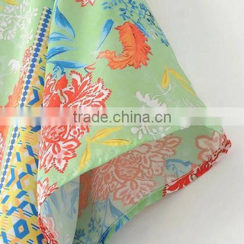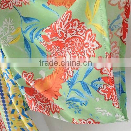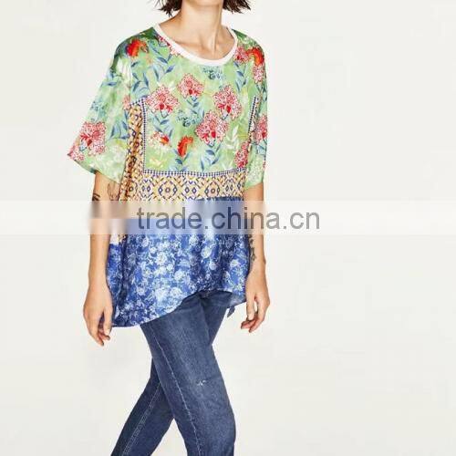 women summer clothes rinted shivering blue Satin Women short sleeve shirt