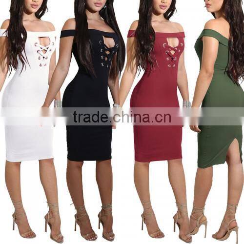 China Guangzhou Clothing OEM One-piece Dress Back Split Tight One-piece Dress