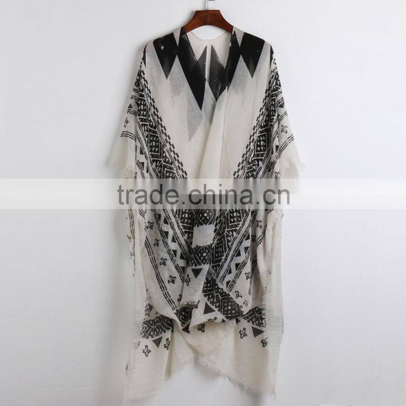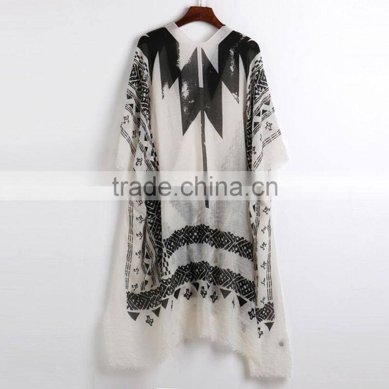 2017 Best Polyester & Cotton Women Long Cardigan mid-long style printed abstract pattern white and black