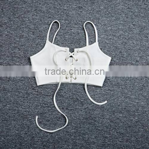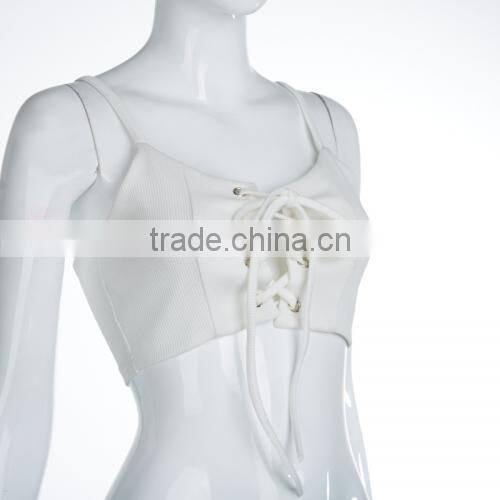 latest design girls top Polyester Crop Top and Lace Up Sleeveless Nightclub Top