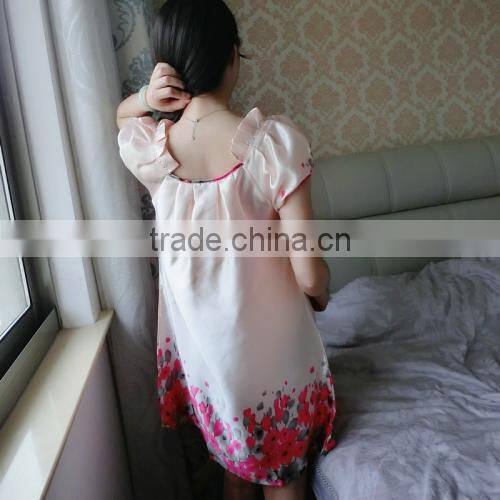 breathable printed floral Apricot 62402 Imitation Silk Sleep Shirt pajamas women