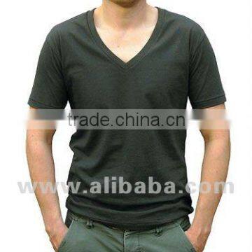 We produce High quality v-neck t-shirts with perfect curve finishing, Customized prints.