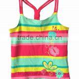 Hot Sale Lovely 100% Cotton Soft Girl's Summer Striped Tank Tops With Embroidery