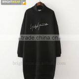 Pullover Long Style Sweatshirt With Mockneck and Embroidery for Women