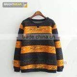 Fleece Pullover Striped Sweatshirt With Printing for Women