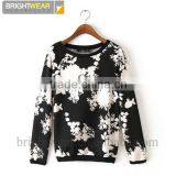 Pullover Sweatshirt With Contrast Flowers Pattern Printing for Women