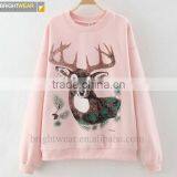 Fleece Pullover Sweatshirt With Animal Printing for Women