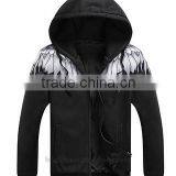 Fashion Zipper-up Hoodie Sweatshirt With Feather Printing and Breathable Fabric for Man