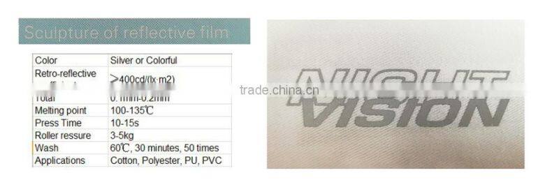 | Item | Reflective logo and high visibility letters be heated on vest or shirt or bag |