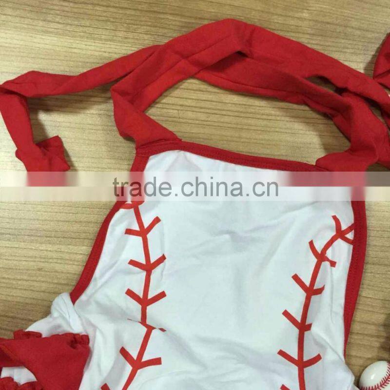 girls boutique clothing infant girl clothes baseball cheap fashion romper with matching necklace and headband set