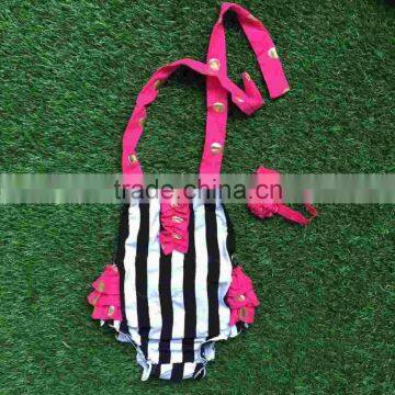 2016 new baby girls kids infant toddler kids bubble romper hot pink ruffle black stripe bubble with headband