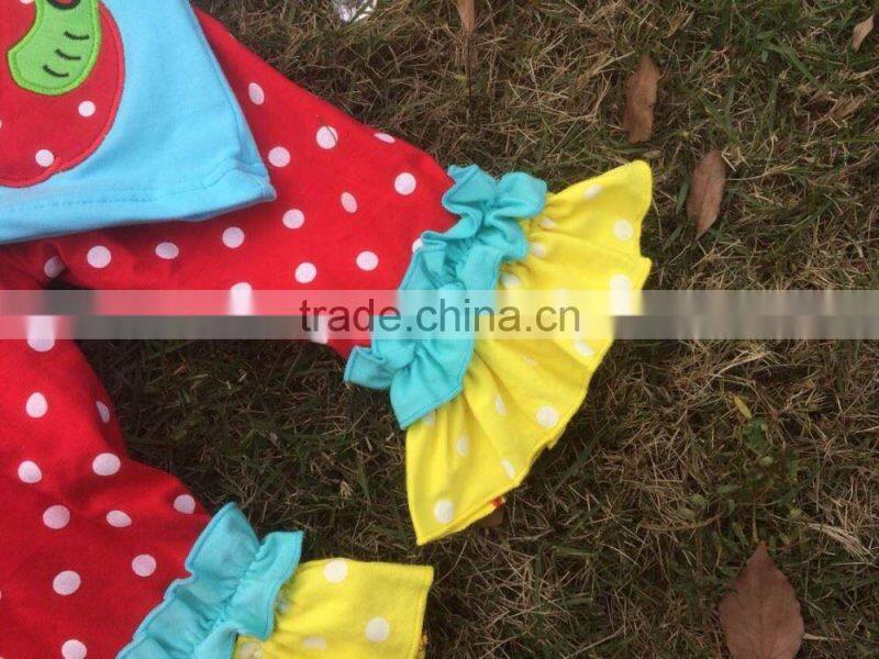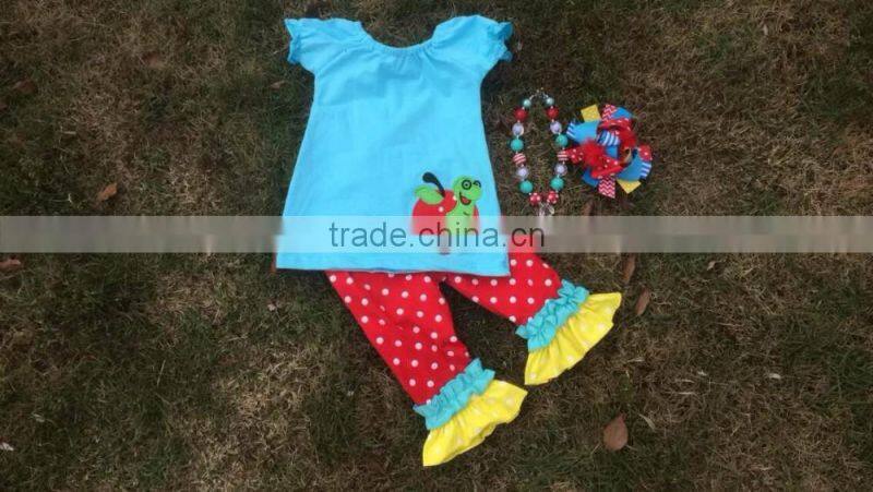 2016 new hot baby girls blue apple white dot capri set outfits with matching necklace and bow