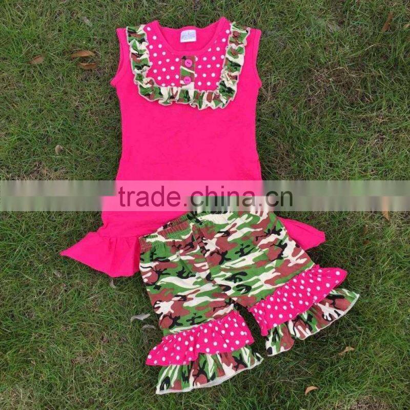Fully stocked new design fashion boutique clothing hot pink camo short sets