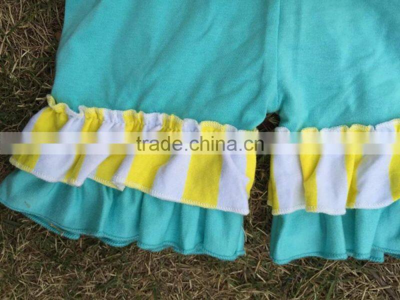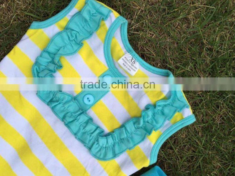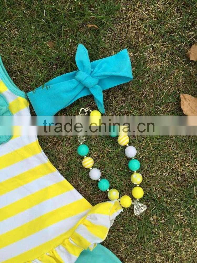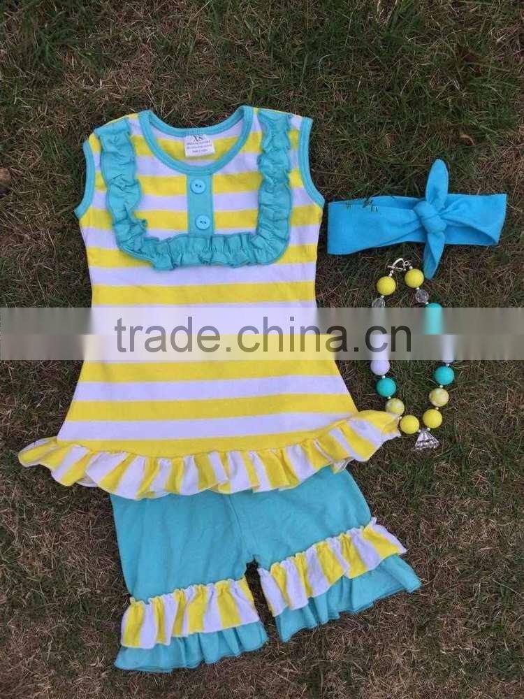 2016 new baby girls yellow strips capri set outfits with matching necklace and headband