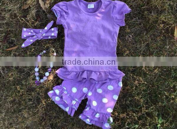 2016 new baby girl purple white dot set outfits with matching necklace and headband set