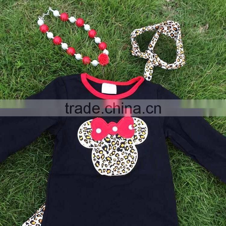 new arrival FALL OUTFITS kids Leopard grain minnie top sets girls ruffle pant sets girls boutique with necklace and headband