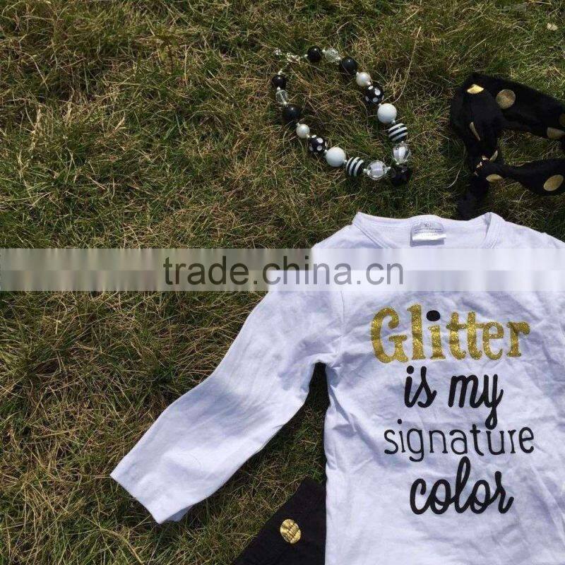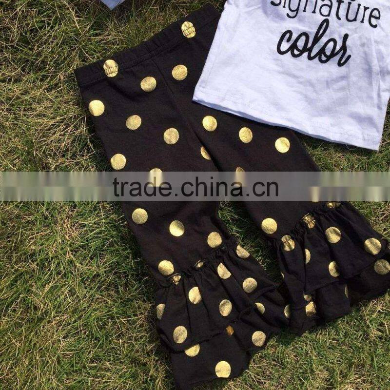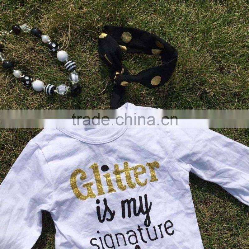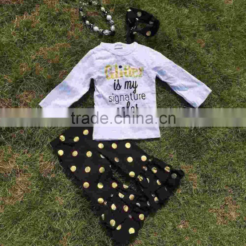baby clothes boutique outfits Fall/winter black gold dot glitter clothing pant long sleeves sets with matching headband set
