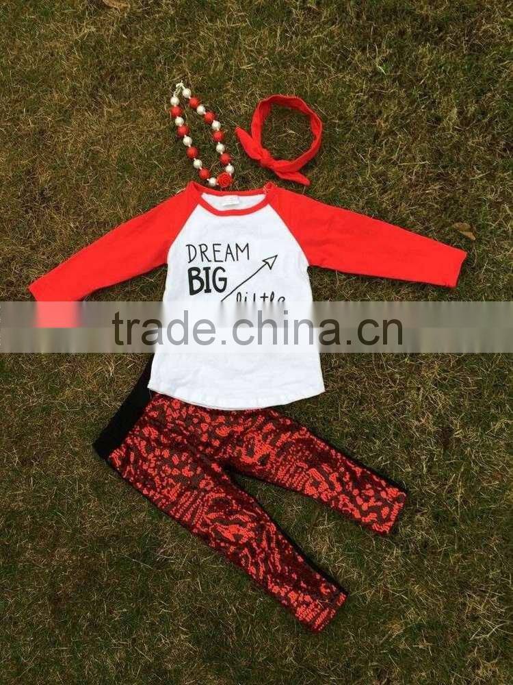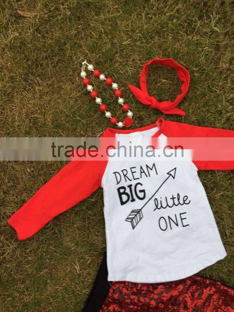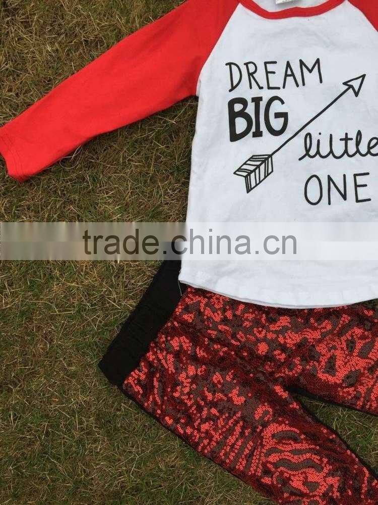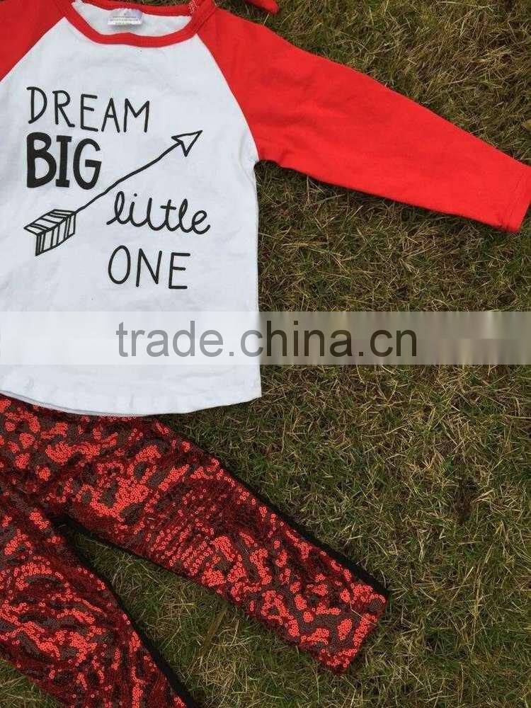 baby clothes winter otufits Children set sequins "dream big little one " kids red suit boutique with mtaching accessories set
