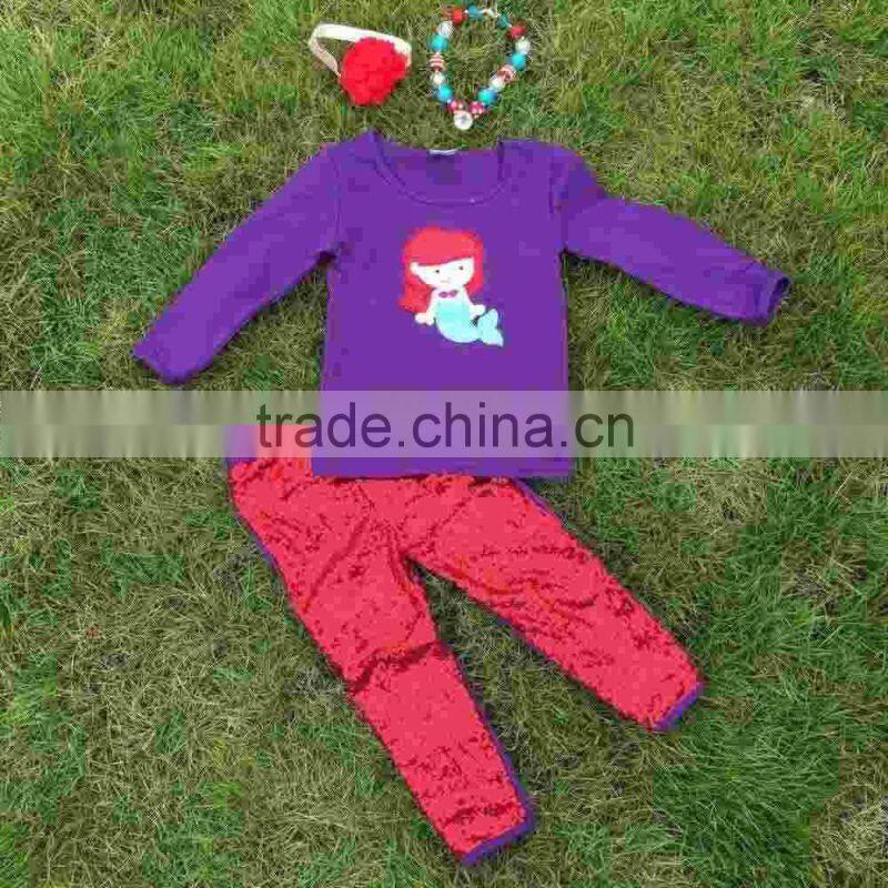 2-7t FALL/Winter kids OUTFITS Mermaid red sequins pant sets girls hot sell cute clothes kids with matching accessories set
