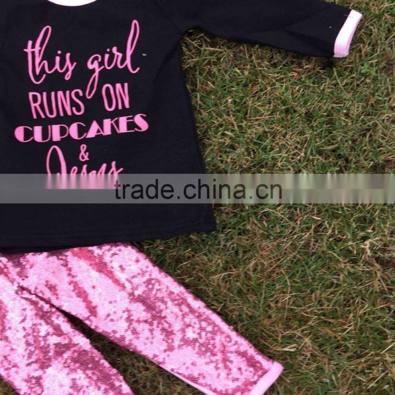 baby clothes winter otufits Children set sequins "runs on cupcakes " kids pink suit boutique with mtaching accessories set