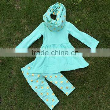 2-7t FALL/Winter children girls suit kids OUTFITS 3 pieces scarf pant sets gold dot girls boutique clothes kids black top sets