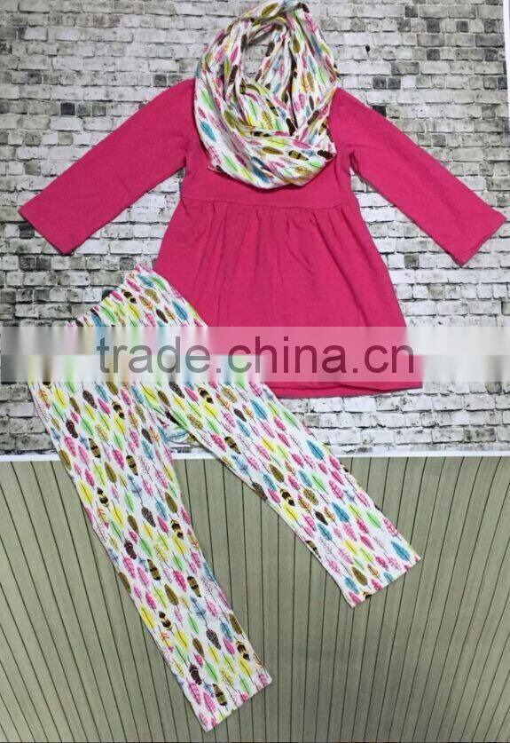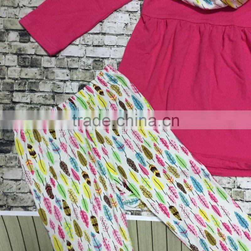Christmas Winter clothing Girl kids Feather print pant scarf clothes hot pink top baby kids wear set