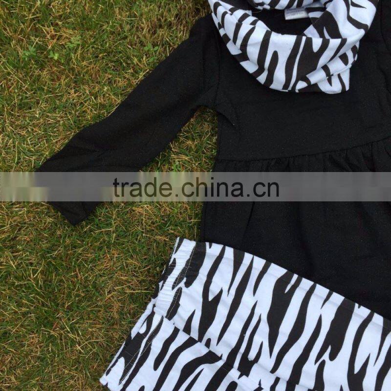winter design baby kids wear Zebra print Girl kids clothing toddler girl clothing hot baby black top pant scarf girls set