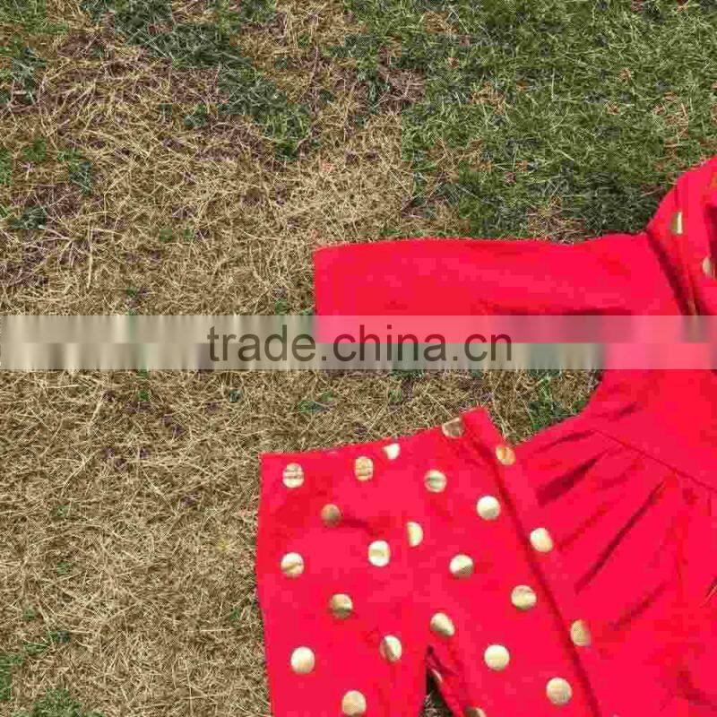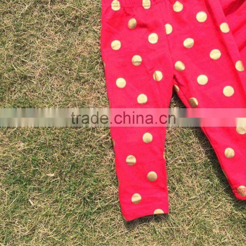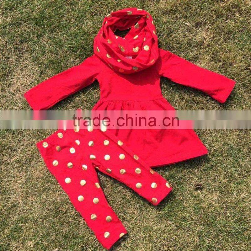 Winter/fall Scarf Set Girls Kids Clothing Hot Sell Red Suit Clothes Gold Dot Pant Set