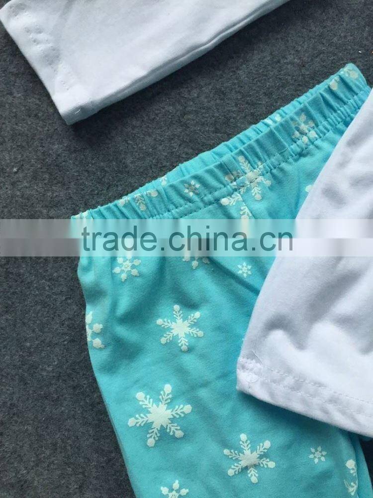 3 pieces scarf hot white and blue top kids outfits tribal snowflake pant new design hot sell boutique clothes sets