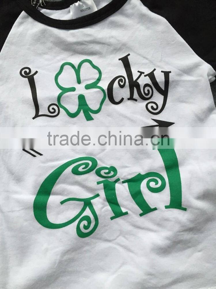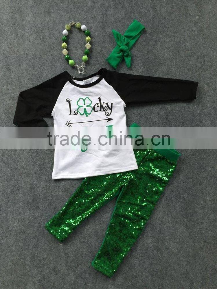 2016 new baby St.Patrick's day theme outfit girls lucky Spring Sequins suit green shirt pants with matching accessories