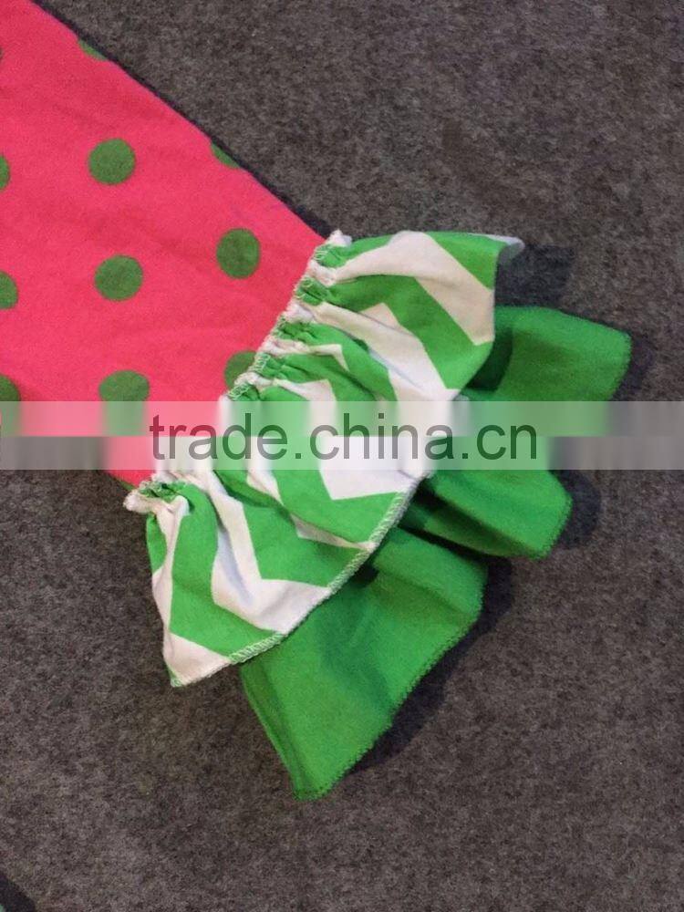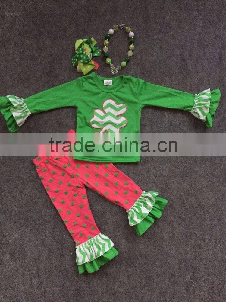 2016 new St.Martin's day theme outfit girls Spring suit green/hot pink shirt dot pants with matching accessories