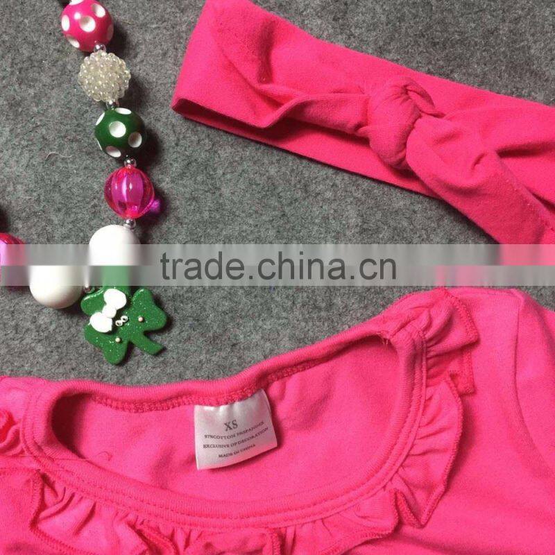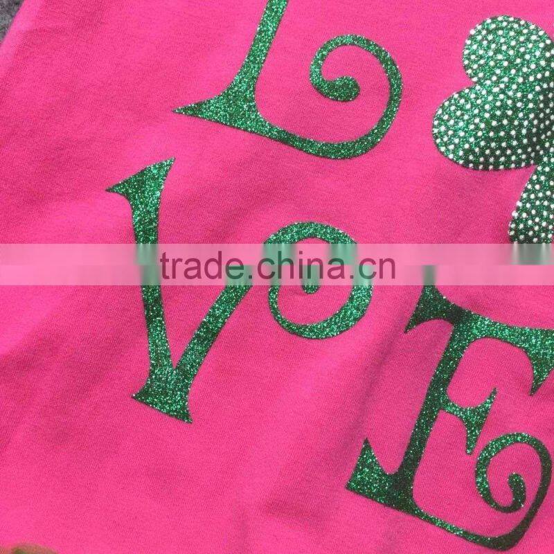 St.Patrick design 2016 girls Summer dress hot pink love long sleeves girls cute party dress with matching accessories